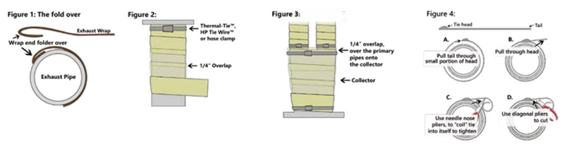 3. Start med at foldes tilbage slutningen af udstødningsindpakningen med 3/4 ”~ 1”. Sørg for, at du trækker den foldede ende underudstødningsindpakningog placer på røret. Dette reducerer flosser på enden af indpakningen. (Figur 1)